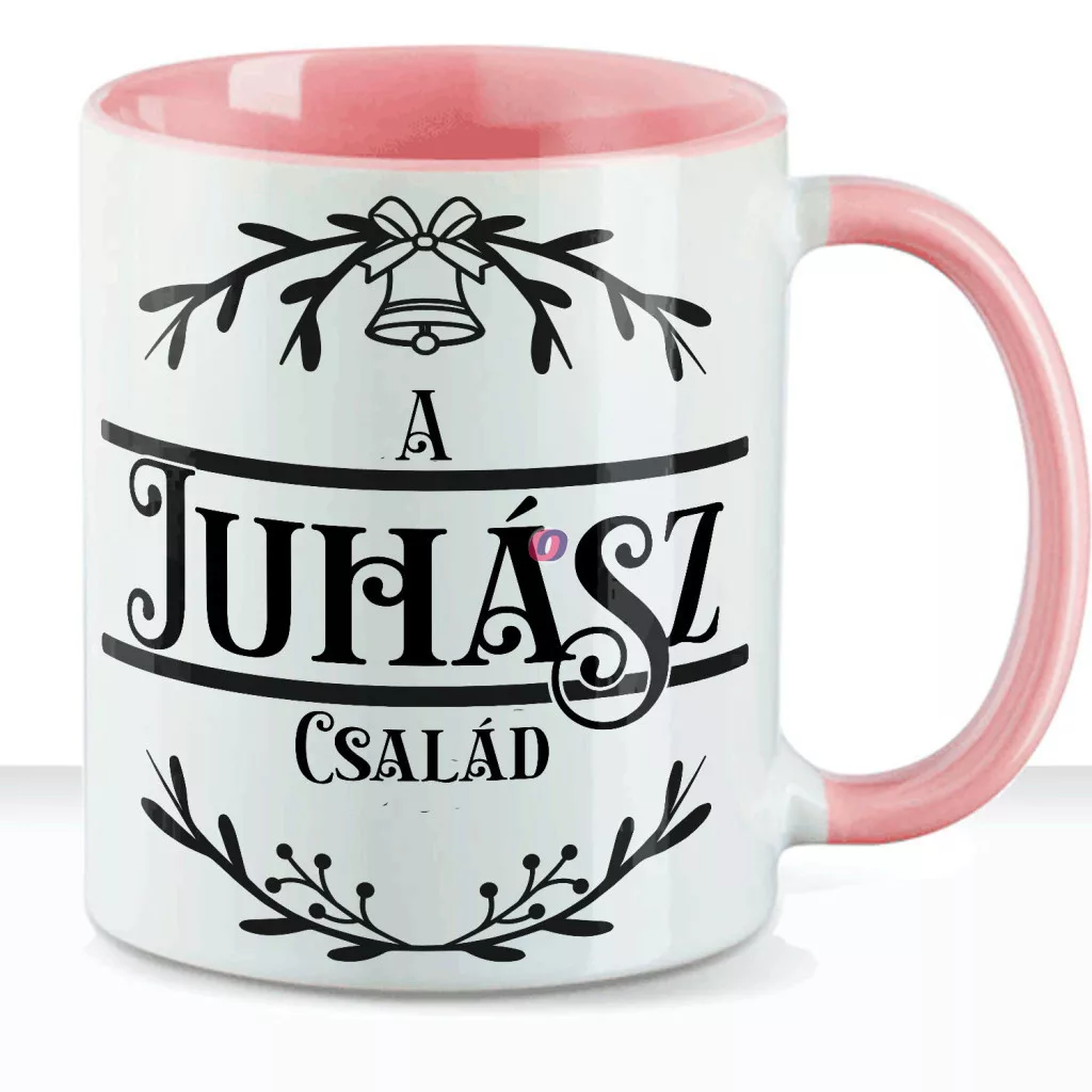 - Egyedi neves karácsonyi bögre "Családneves" 330 ml kerámia Rózsaszín Full HD