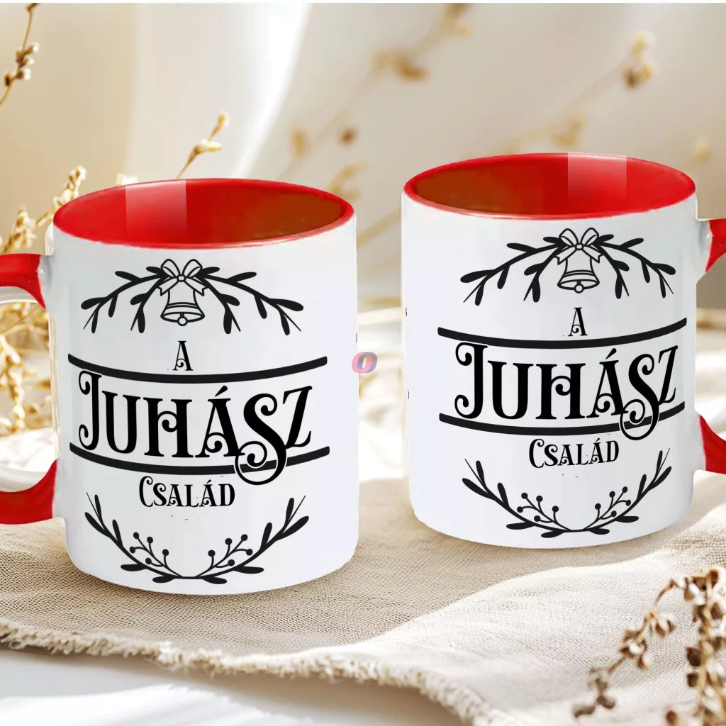 - Egyedi neves karácsonyi bögre "Családneves" 330 ml kerámia piros Full HD
