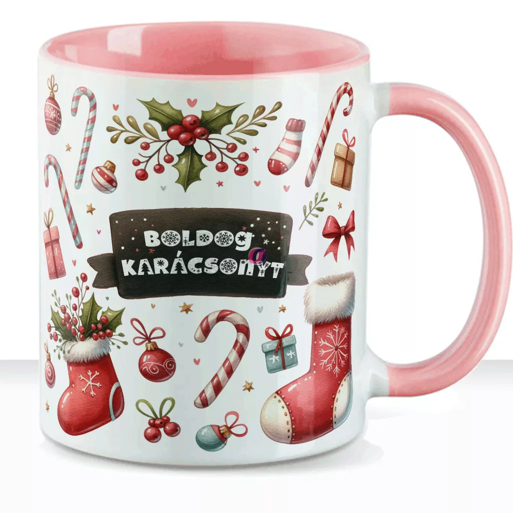 - Egyedi neves karácsonyi bögre "Candy Christmas" 330 ml kerámia Rózsaszín Full HD