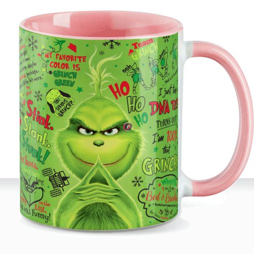 Grincses karácsonyi bögre "Green Grinch" pufi hatású rózsaszín bögre
