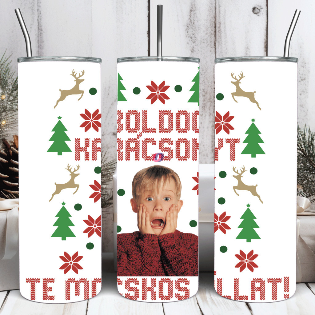 Prémium Karácsonyi termosz 600ml "Reszkessetek betörők csúnya pulcsi mintás"