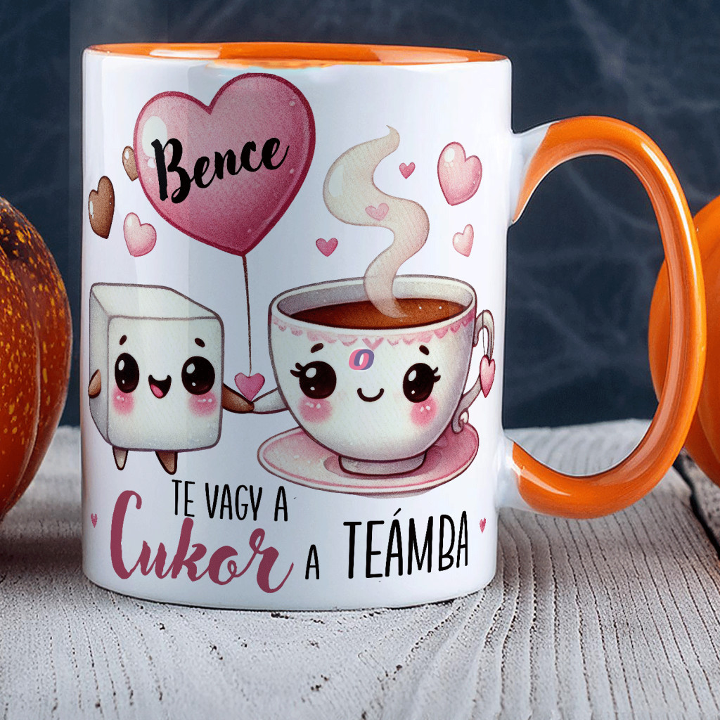 - Egyedi feliratos Valentin bögre "Te vagy a cukor a teámba"