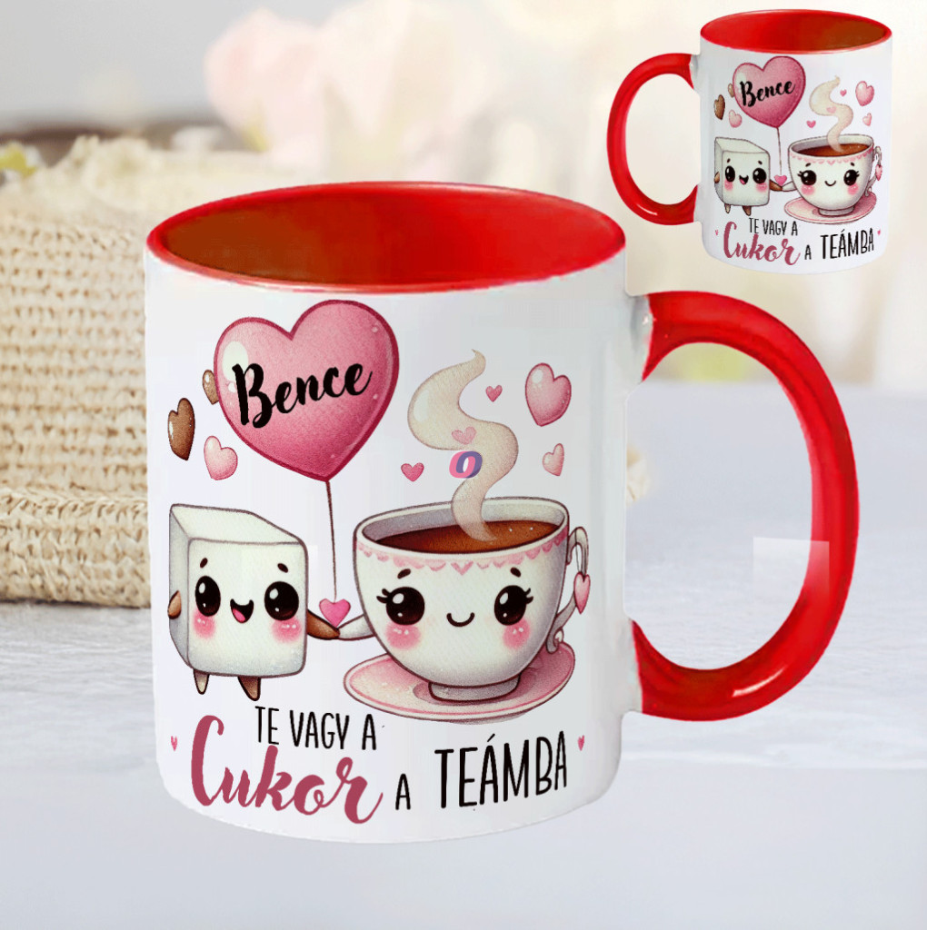 - Egyedi feliratos Valentin bögre "Te vagy a cukor a teámba"