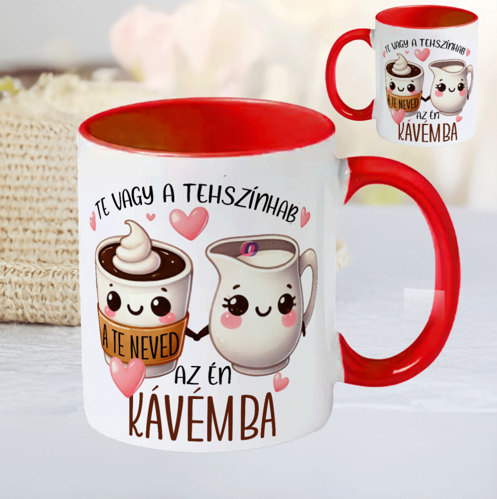 - Egyedi feliratos Valentin bögre "Te vagy a tejszínhab a kávémba"