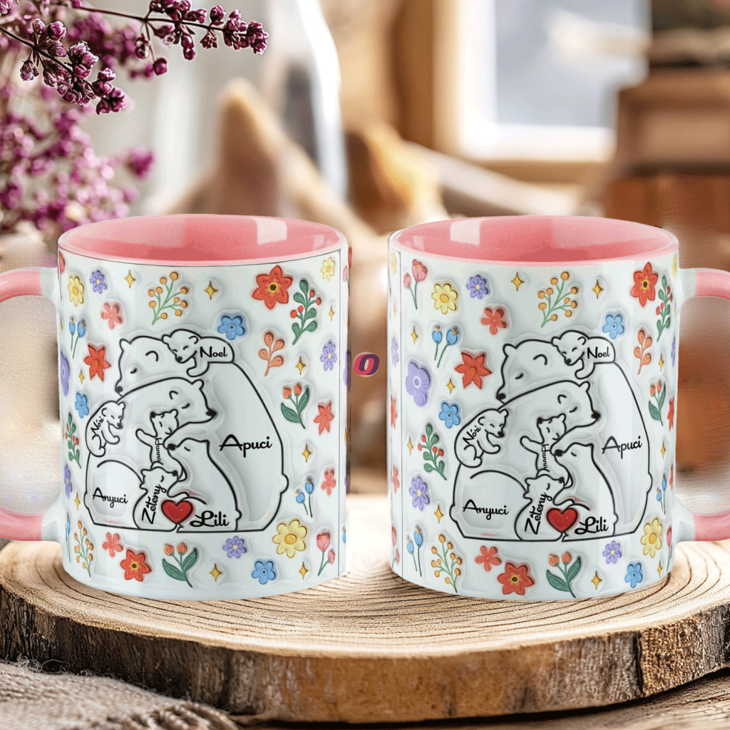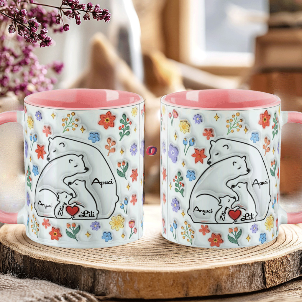 - Egyedi feliratos Ajándék bögre "Medve család, Max 5 gyerek"