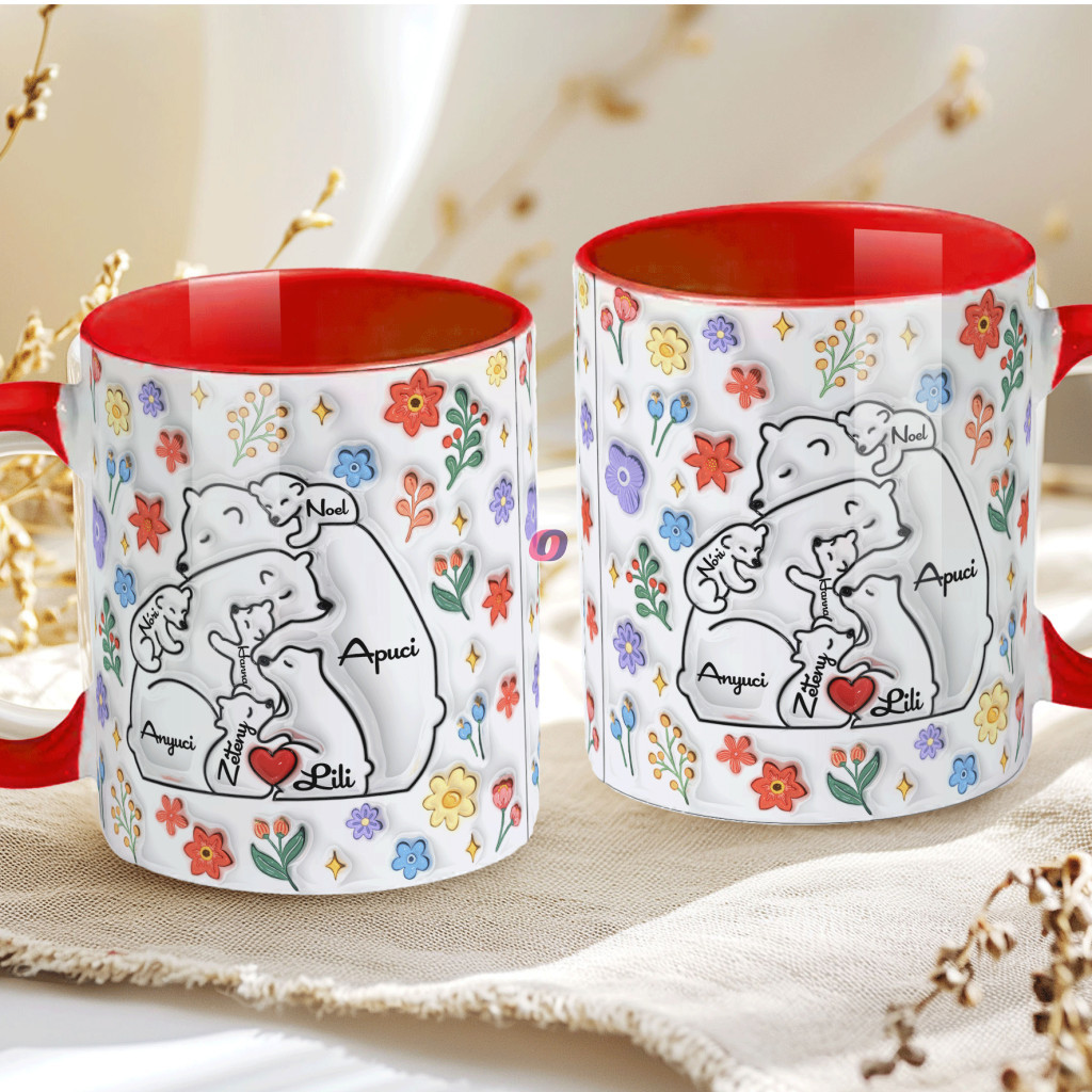 - Egyedi feliratos Ajándék bögre "Medve család, Max 5 gyerek"