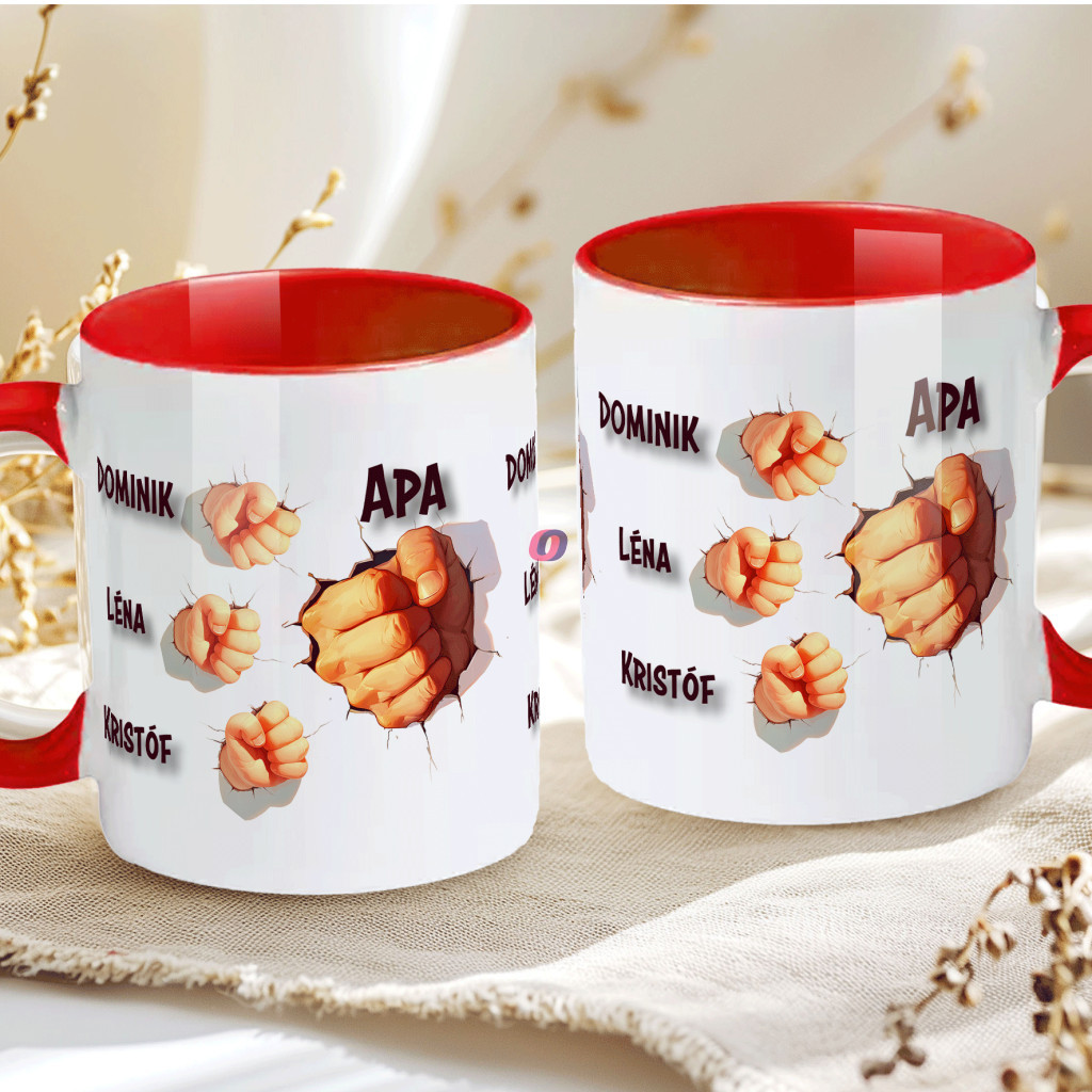 - Egyedi feliratos Apák napi bögre "3D kezek, Max 5 gyerek"
