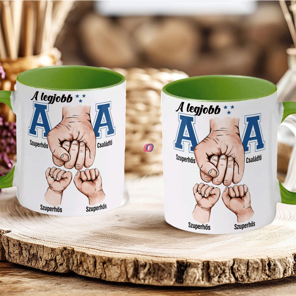 - Egyedi feliratos Apák napi bögre "Legjobb apa kék, Max 5 gyerek"