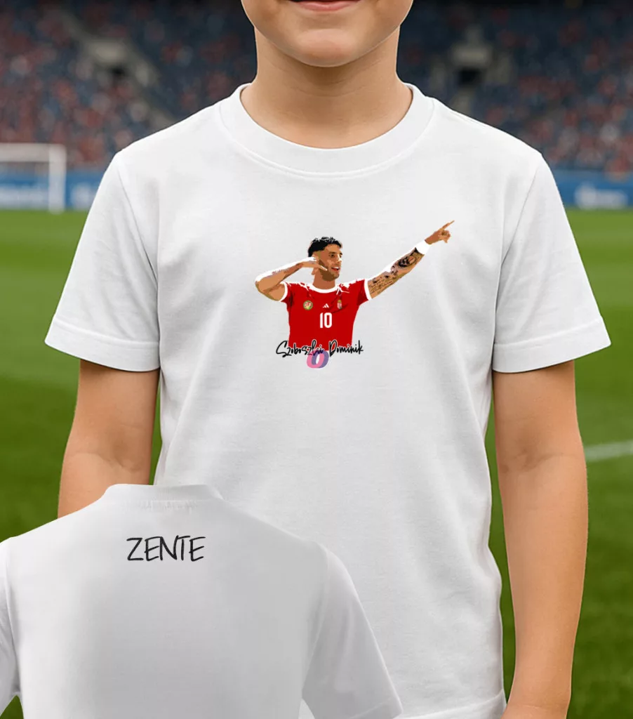 - Prémium Szoboszlai Dominik grafika a mellső oldalon. A minta mérete: 20x13 cm