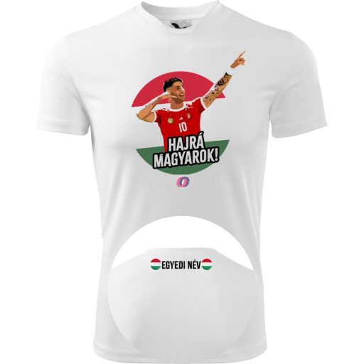 Egyedi neves Gyerek szurkolói póló - Hajrá Magyarok, fehér 8 év