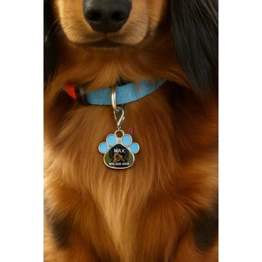 Ez a stílusos, mancs alakú biléta tökéletes választás, ha egy igazán személyes és emlékezetes ajándékot keresel. A medál fényképpel és szöveggel is személyre szabható, így ideális lehet kutya nyakörvre, emléknek, szeretteink megőrzésére, vagy akár céges, promóciós célokra is.