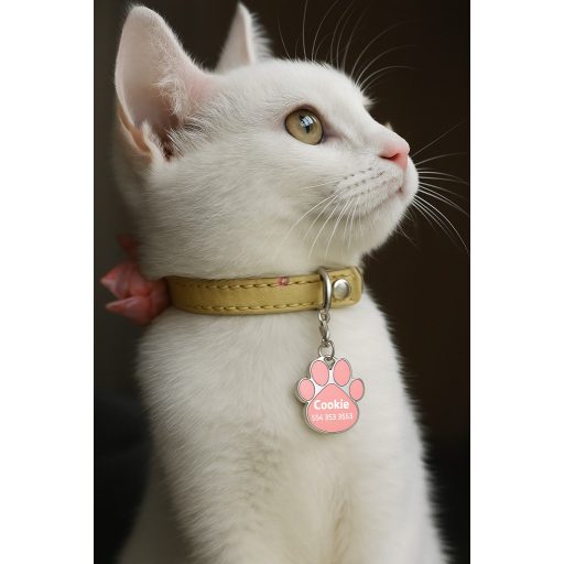 Egyedi képes, neves biléta nyakörvre, személyre szabható, rózsaszín
